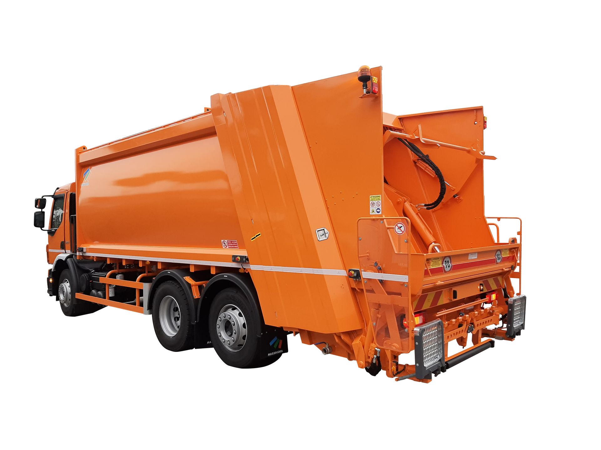 Il sistema di compattazione è stato riposizionato all’interno della tramoggia in modo da migliorare la ripartizione dei carichi sull’asse posteriore. Il nuovo sistema, a monopala articolata, presenta un cinematismo ottimizzato per la compattazione di rifiuti particolarmente voluminosi; il sistema scorre su guide rettilinee con pattini posizionati all’esterno della tramoggia, in posizione di facile accesso per la pulizia e la manutenzione